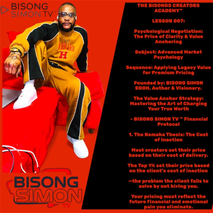 The work contained in these pages is built to outlast us. Not in rhetoric, but in systems: habits, public ledgers, micro-cases, and the three-pair clarity package. If you commit, your output will compound: clarity produces decisions, decisions produce offers, offers produce proof, and proof unlocks scale. BISONG SIMON TV™️ is more than content — it is a practice. Treat it like a craft; show up with humility, discipline, and the refusal to quit.